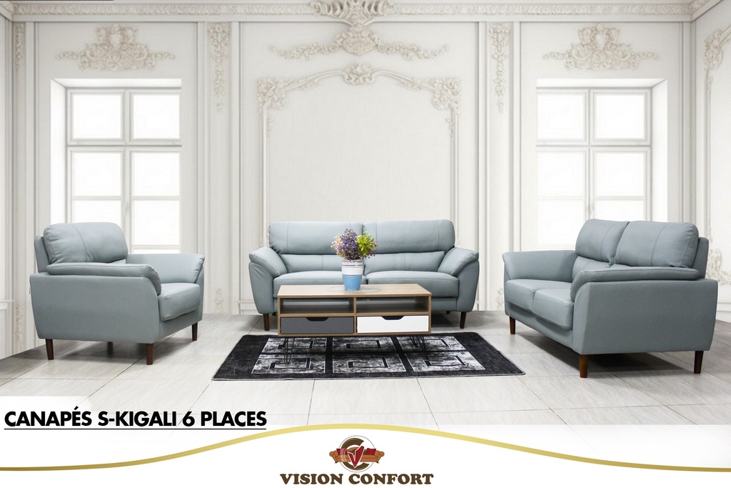 Ces canapés 06 places KIGALI proposent un style unique et chic avec ses lignes épurées et son piètement en bois massif. Ils seront sans doute les pièces maîtresses de votre salon et seront un véritable havre de paix grâce à leur confort incomparable. Leurs assises constituées de mousses haute résilience avec des ressorts qui vous accueillent agréablement et reprennent rapidement leur forme initiale quand vous vous levez. A Vision Confort nous prenons tout le recul nécessaire à la conception des produits confortables avec des finitions irréprochables.